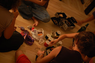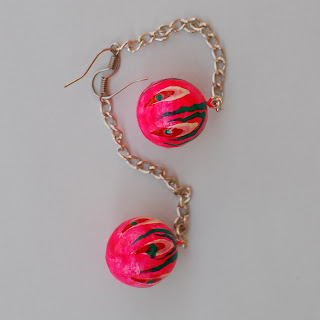 They are created from ceramic paste and painted with acrylic paint.